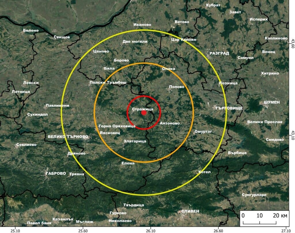 Трусът, станал в 16:03 часа, е бил отчетен на 72 километра югоизточно от Русе и на 6 километра източно от Стражица, където е бил усетен от местните жители.