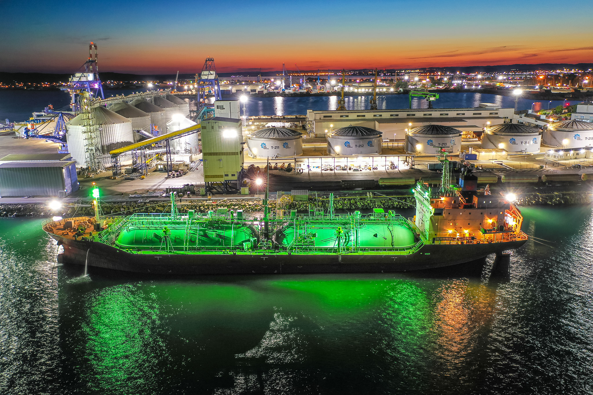 В комплекса за обработка на втечнени въглеводородни газове (пропан бутан) са вложени 6 млн. евро. Това е единственият по рода си в България специализиран комплекс за разтоварване на втечнени въглеводородни газове от танкери и директно претоварване на жп и автоцистерни без съхранение, с изградена иновативна система за втечняване на газовите пари.