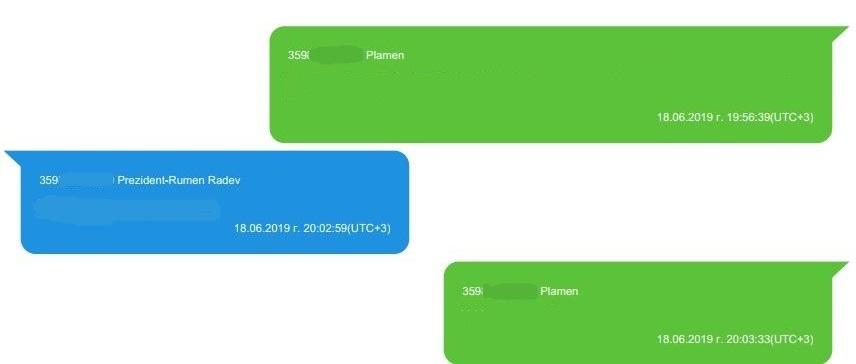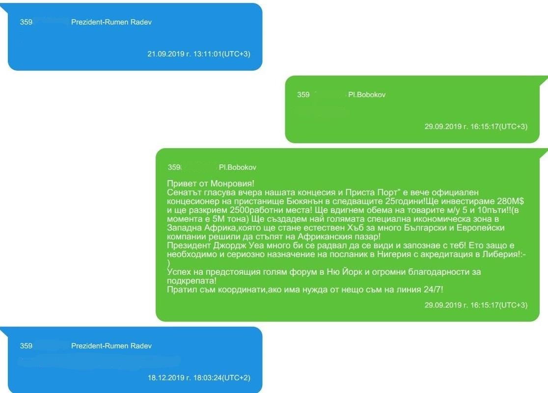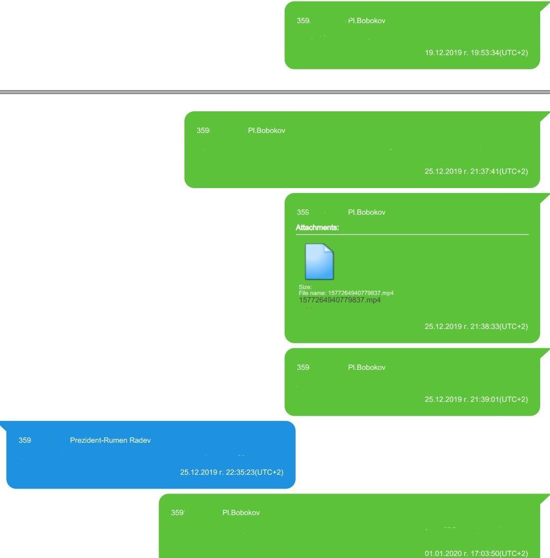Текстовата комуникация се е осъществила между вероятно лице с имунитет от една страна и обвиняемия П.Б. от друга. Същата се съдържала в експертиза на мобилен телефон, ползван от П.Б. Съобщение, изпратено от Plamen Bobokov до Prezident – Rumen Radev на 29 септември 2019 година (в 16:15 часа) е със следното съдържание: