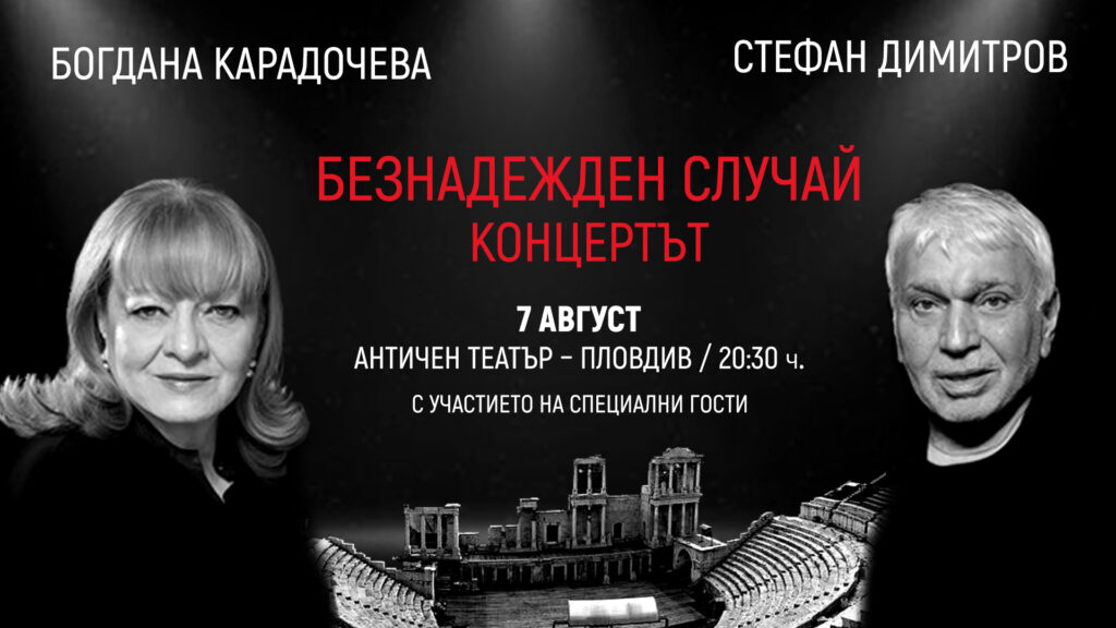 Този рефрен от хита „Безнадежден случай“ на Богдана Карадочева и Стефан Димитров е мото на предстоящия едноименен концерт на 7 август в Античния театър в Пловдив.