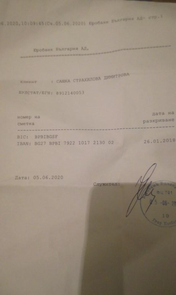 IBAN:BG27BPBI79221017213002, BIC:BPBIBGSF, титуляр на сметка: Сашка Страхилова Димитрова.