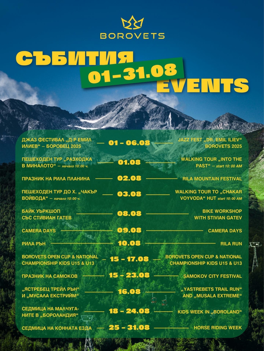 Летният месец ще бъде изпълнен с енергия и разнообразие: очакват ви спортни състезания, организирани пешеходни турове, активности сред природата и безброй възможности за незабравими моменти в планината.