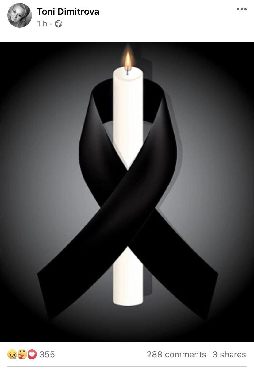 Тони Димитрова съобщи за тъжната вест в социалната мрежа. Под публикацията стотици хора изказаха своите съболезнования.