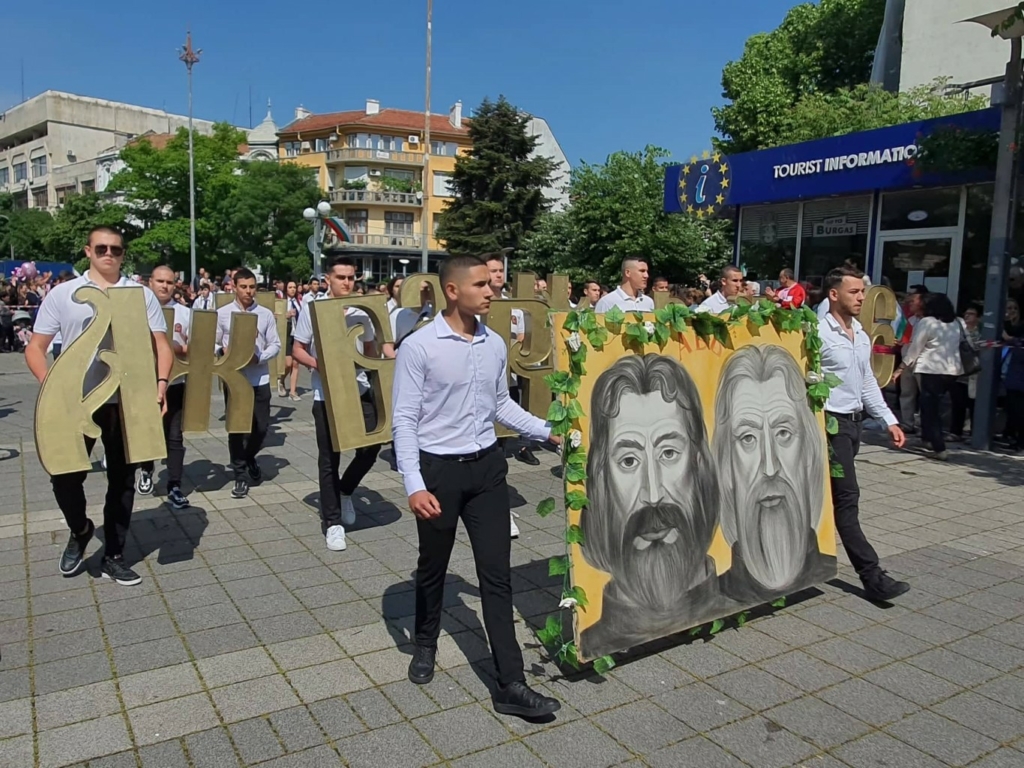 Рекорден брой участници ще се включат тази година в най-мащабното шествие за 24 май в Бургас. 16 500 деца, ученици, студенти, духовници и културни дейци ще шестват празнично от 10:30 часа по ул. „Александровска“, „Богориди“ и терасата в Морската градина в чест на светите братя Кирил и Методий и тяхното дело.