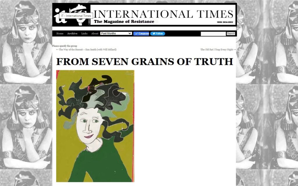 Стихотворението на бургазлийката Наталия Недялкова „От седем зрънца истина“ от новата й книга „Стихоанализа“, финансирана от Община Бургас, е публикувано в сред знаковите литературни издания „International Times“ във великолепен превод на талантливата българска поетеса Десислава Цветкова. То е илюстрирано от главния редактор на „International Times” Ник Виктор.