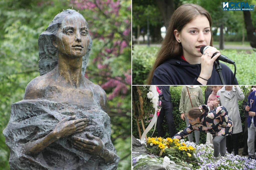 Децата се събраха пред паметника на поетесата в Морската градина на Бургас, където поднесоха цветя в нейна памет.