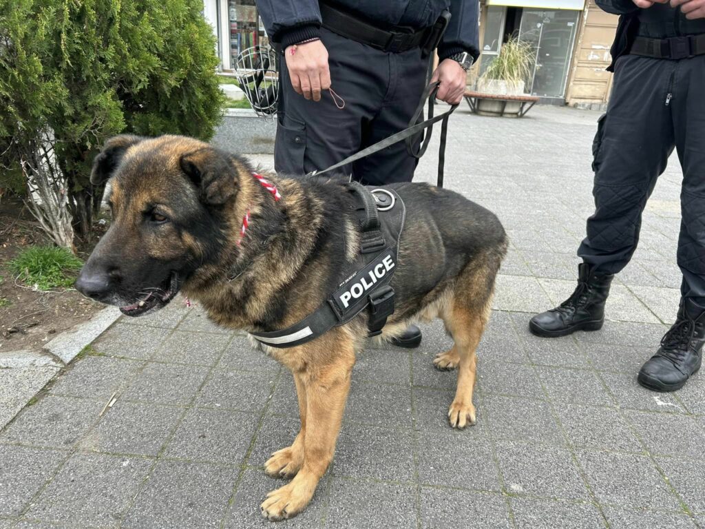 Служебното куче Бим на патрулиращия в центъра на Бургас полицейски екип вече също има мартеница и може да се почувства част от днешния празник.