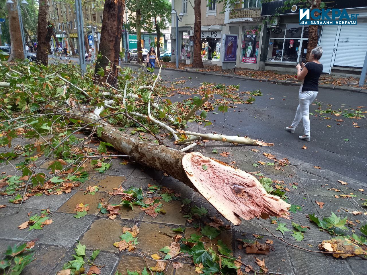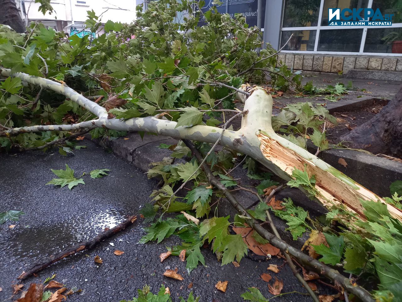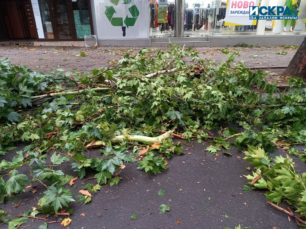 Същевременно огромни клони са паднали на улица „Александровска“ край Стоматологията.