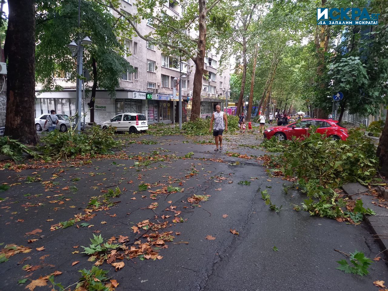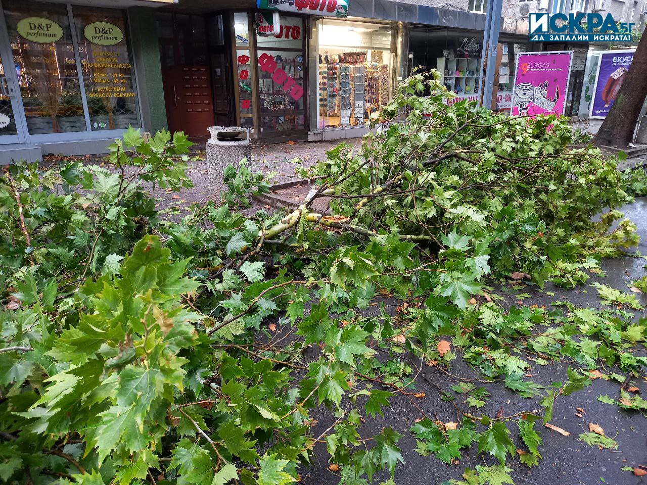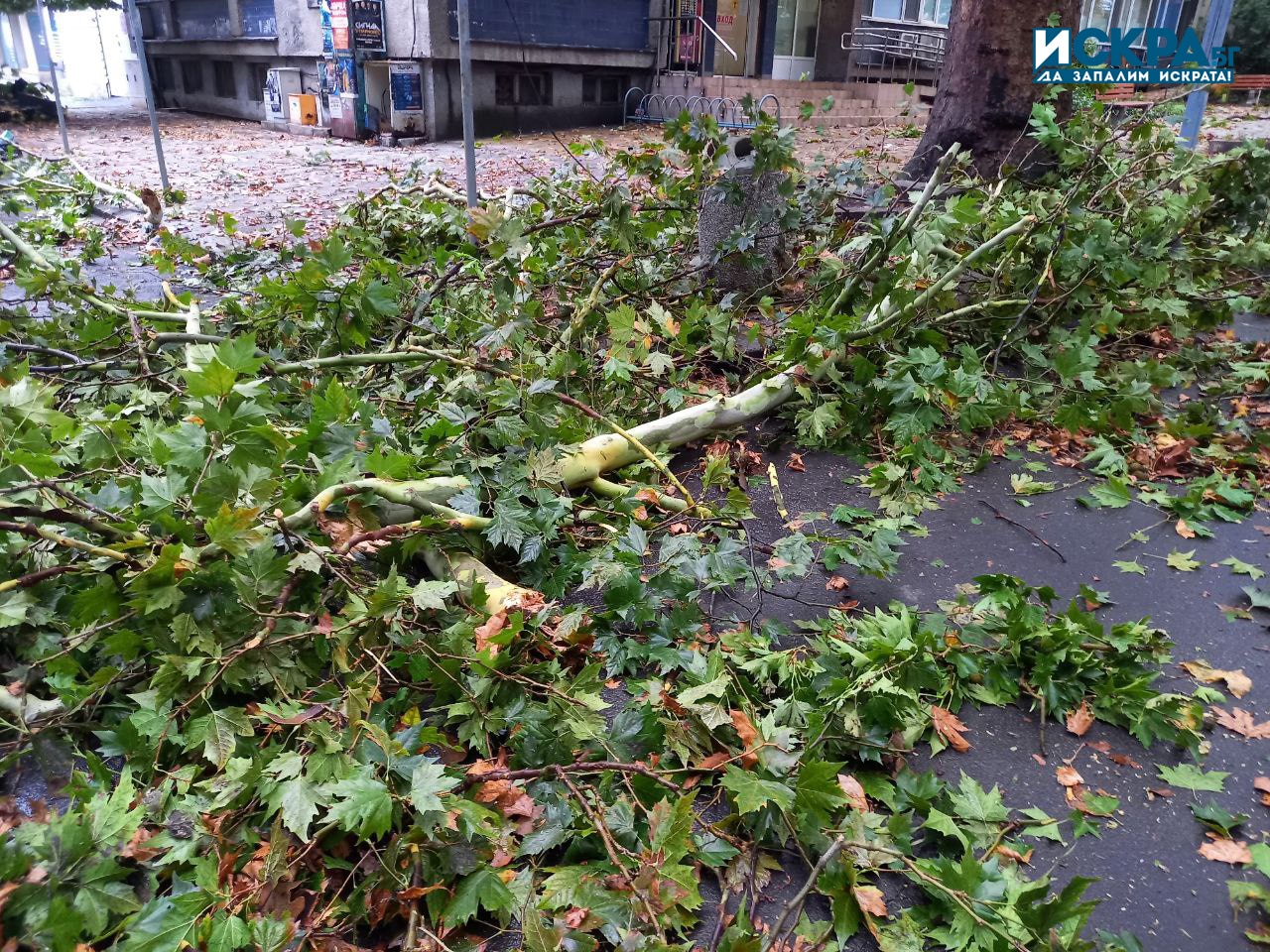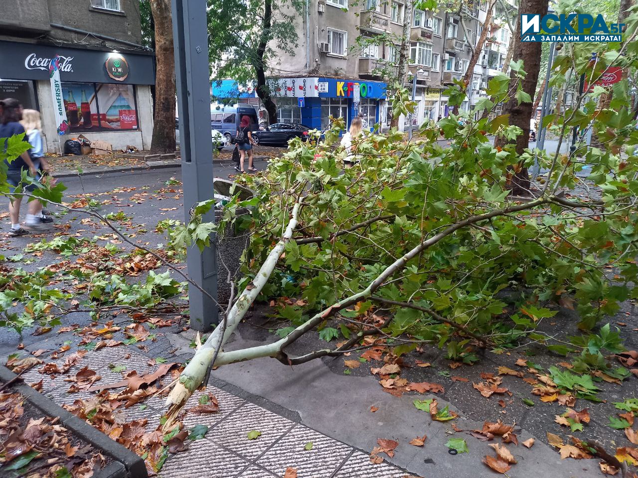 Същевременно огромни клони са паднали на улица „Александровска“ край Стоматологията.