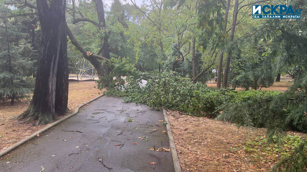 Паднали клони и прекършени дървета – това е гледката в Морската градина на Бургас след лятната буря, която премина през морския град.