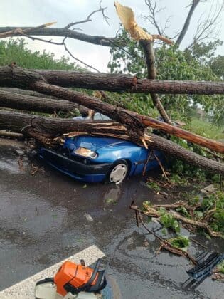 „Чу се силен трясък. Секунди по-късно разбрах, че върху колата ми се стовари огромно дърво. Опитах се да запазя самообладание и излязох през люка. Извадих голям късмет“, разказва мъжът пред огнеборците от службата в Садово, които мигновено се притекли на помощ. Пожарникарите освободили пътя и смачкания до неузнаваемост автомобил.
