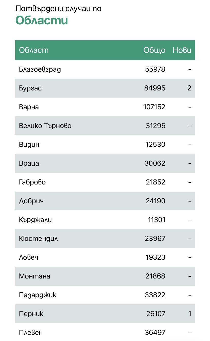 Няма починали през последните 24 часа. Общият брой на изгубилите битката за живота си е 38 404.