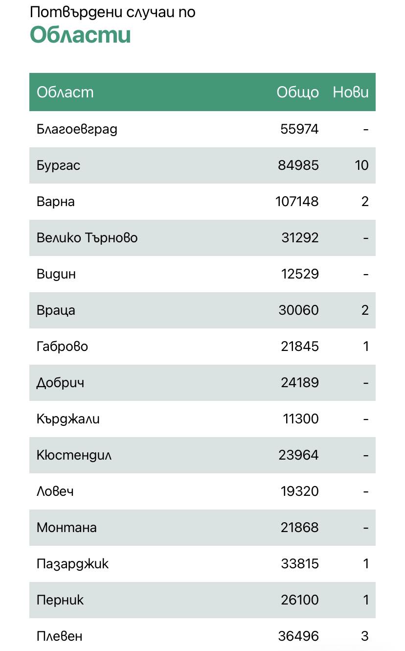 Няма починали през последните 24 часа. Общият брой на изгубилите битката за живота си е 38 399.