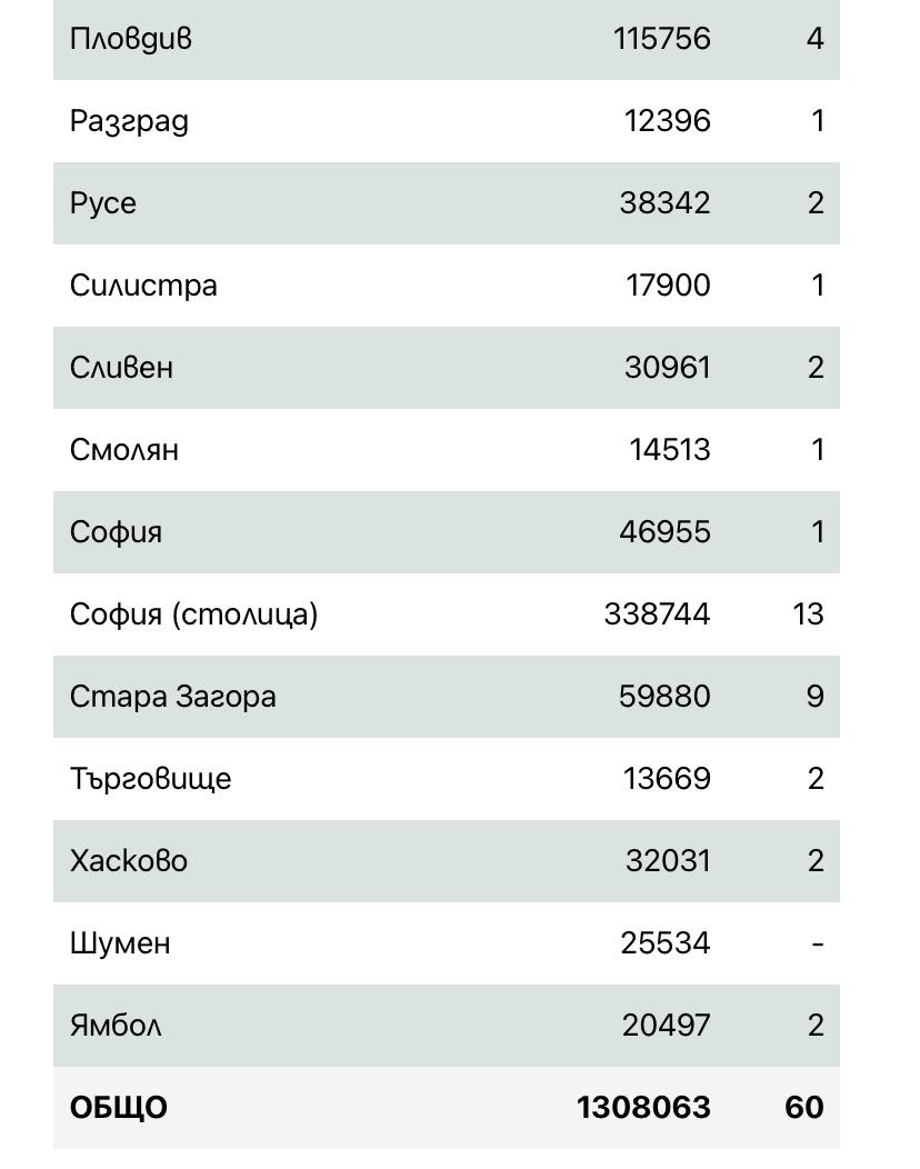 60 нови случая на COVID-19 са били установени у нас през изминалото денонощие от направени 1674 теста, показват данните в Единната информационна система. 53,33% от новозаразените не са ваксинирани. Общо потвърдените случаи от началото на пандемията са 1 308 063 като активните са 1945.