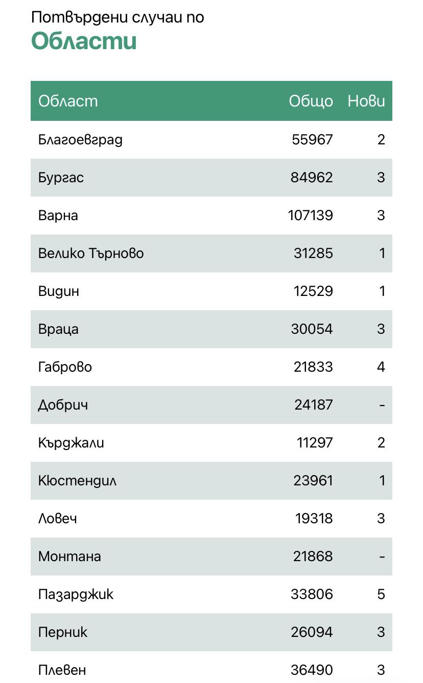 Трима души са починали през последните 24 часа. 33,33% от тях не са били ваксинирани. Общият брой на изгубилите битката за живота си е 38 391