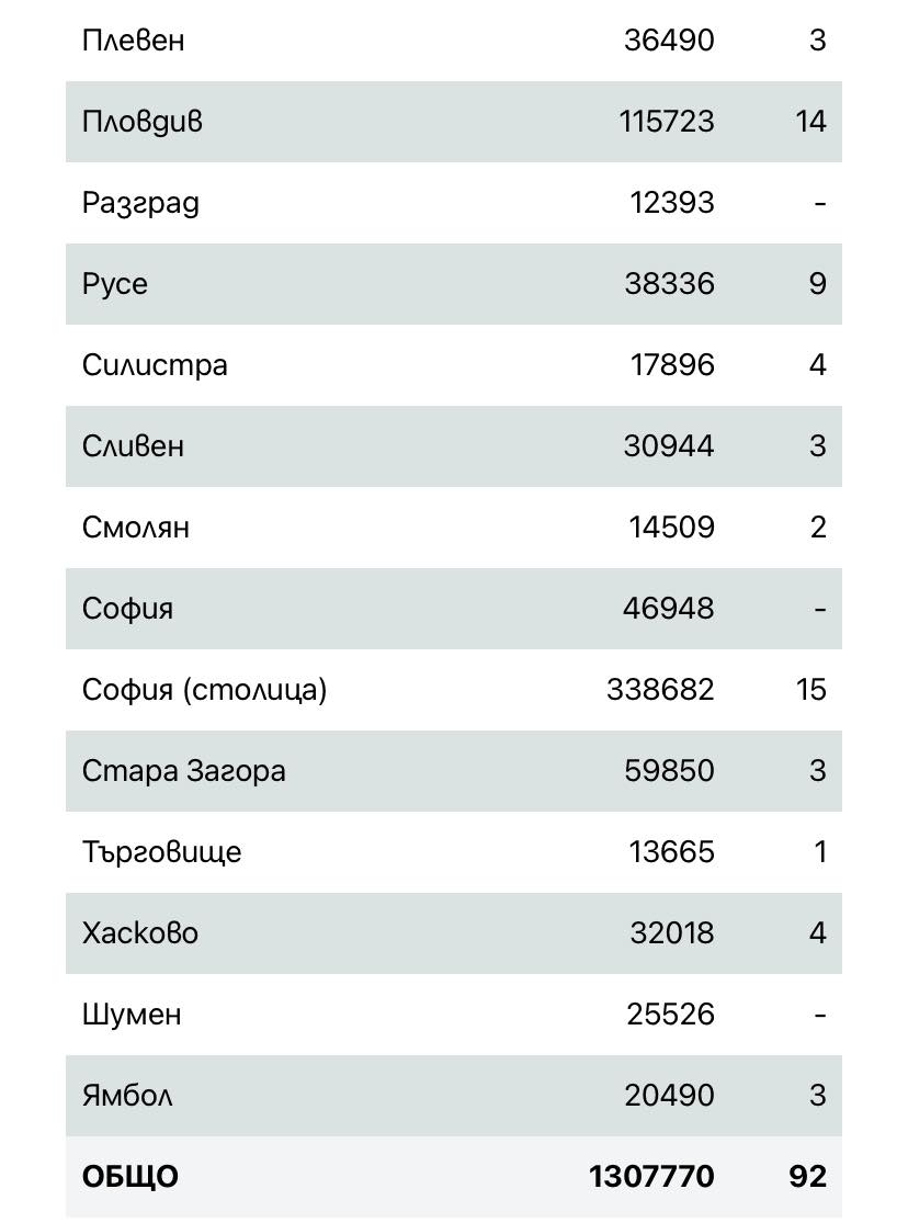 COVID-19 в България: 92 нови случая, 83 излекувани и 3 починали
