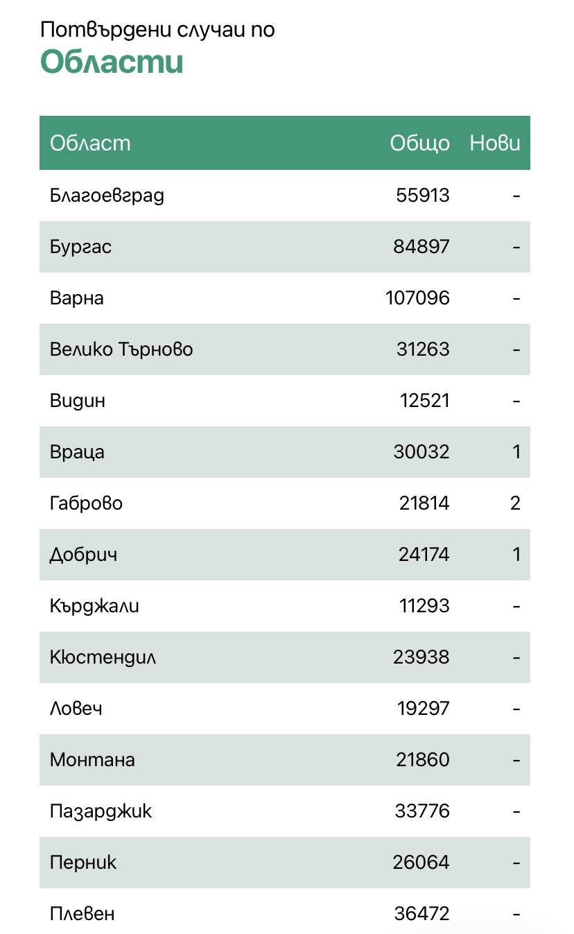 Един човек е починал през последните 24 часа. Той не е бил ваксиниран. Общият брой на изгубилите битката за живота си е 38 369.