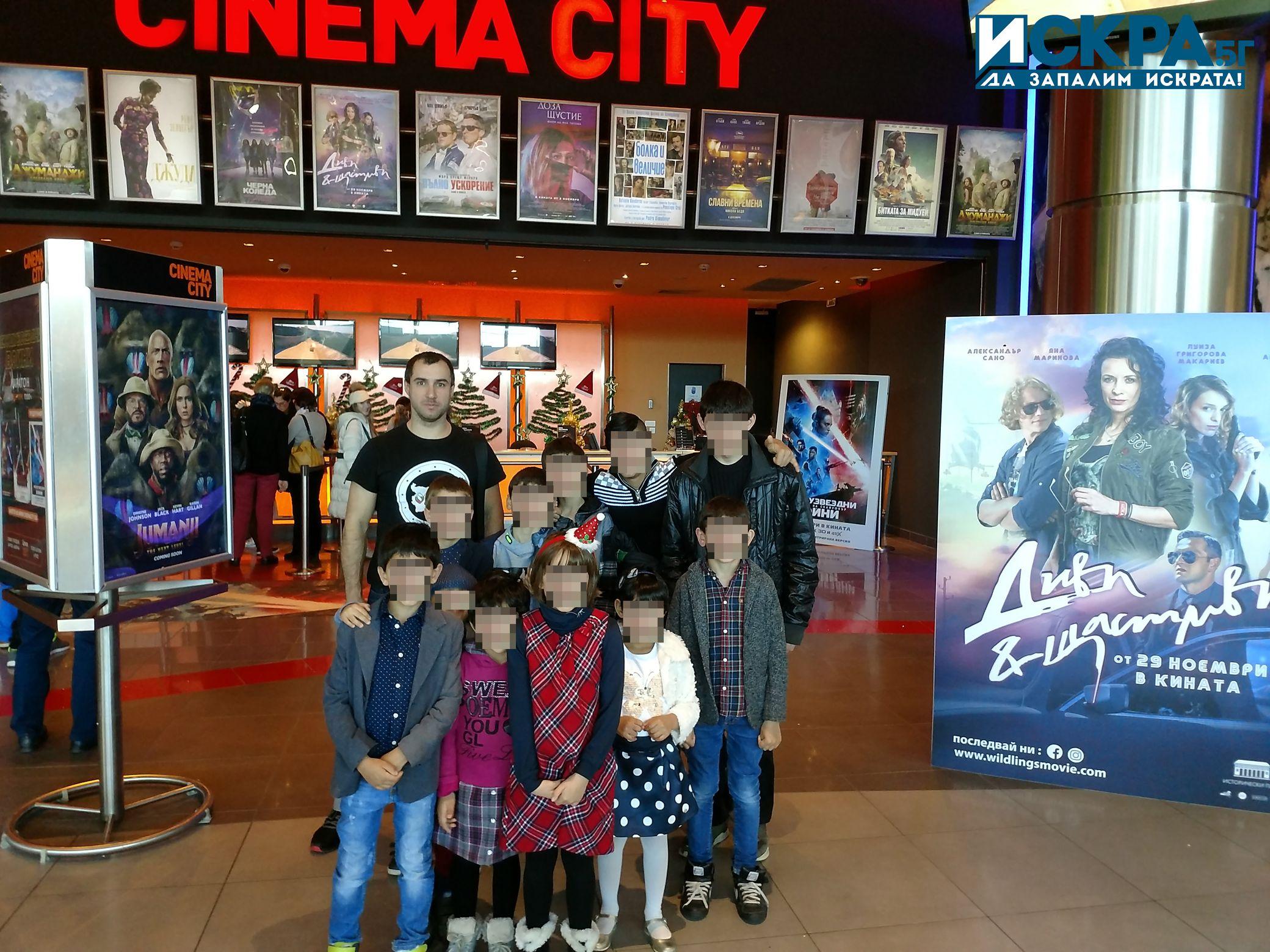 След това ги заведохме на кино. Настана всеобща радост, когато получиха пуканки и специални очила за гледане на филма.