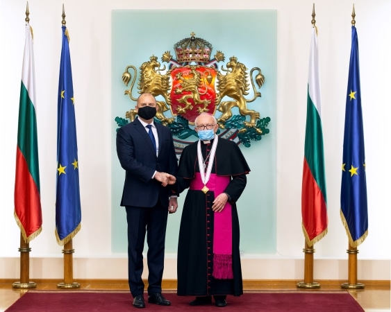 Монсеньор Пекорари връчи на президента Румен Радев официалния сребърен медал на понтификата за настоящата година.