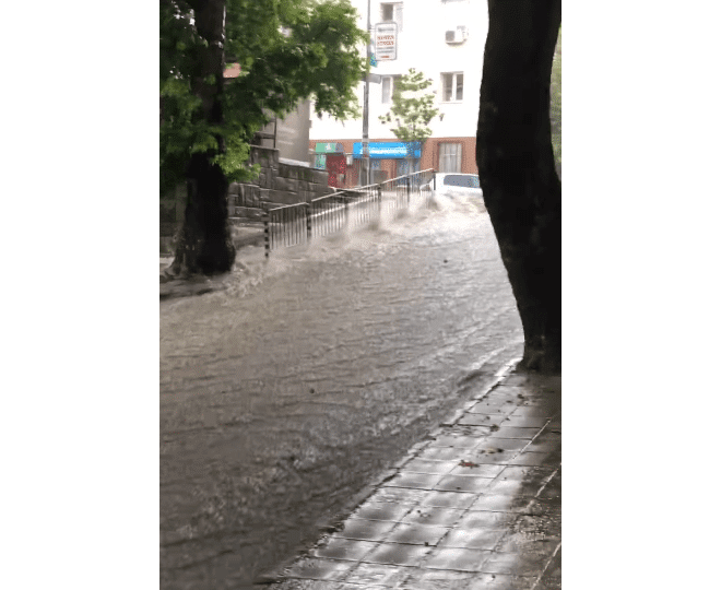 Кадрите във видеото показват наводнените улици и събуждат редица въпроси. Според някои от гражданите, проблемът е в шахтите, които не са адекватно направени.