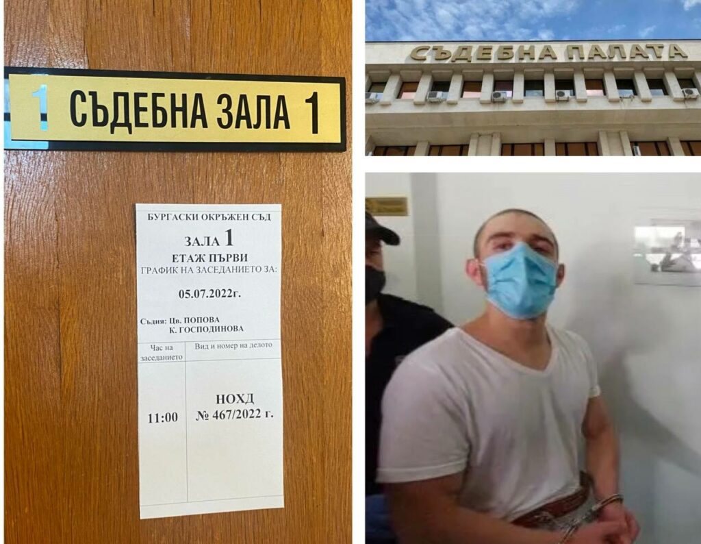 Причината – на 4 юли в съда е получено писмо от затвора в Бургас, в което е посочено, че младият мъж не може да бъде приведен в качеството си на обвиняем пред съдебния състав, защото е настанен в специализирано психиатрично заведение в Ловеч. В съдебната зала се яви адвокатът му Георги Сталев.