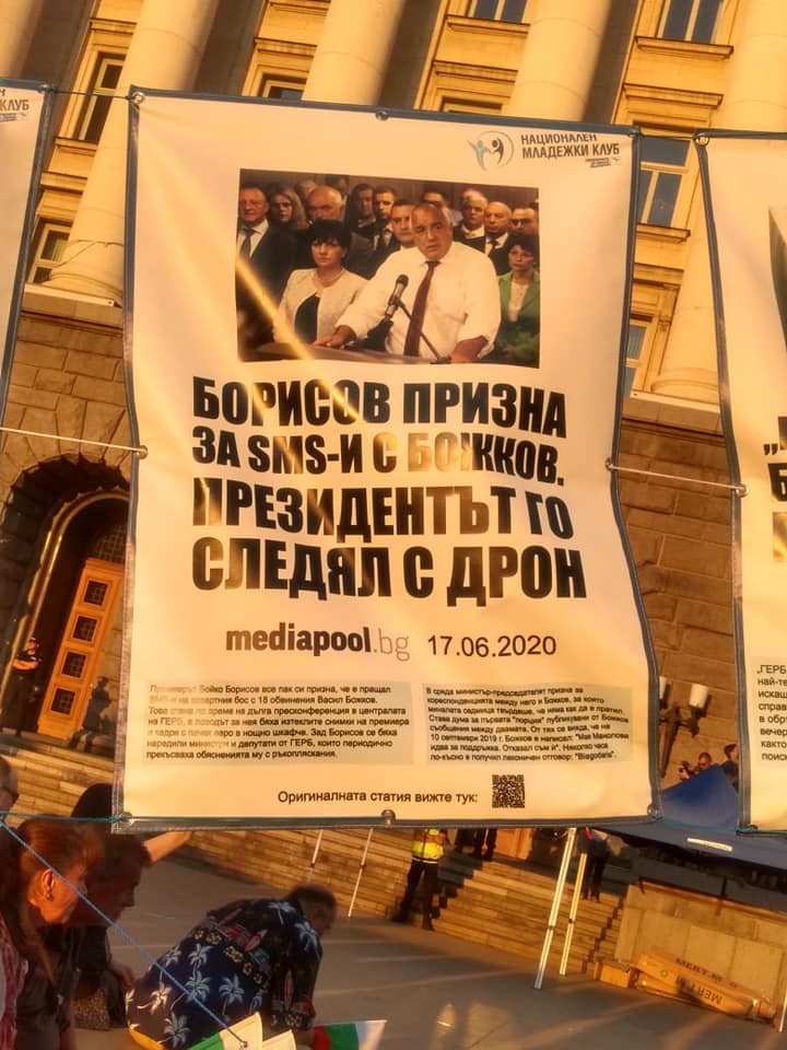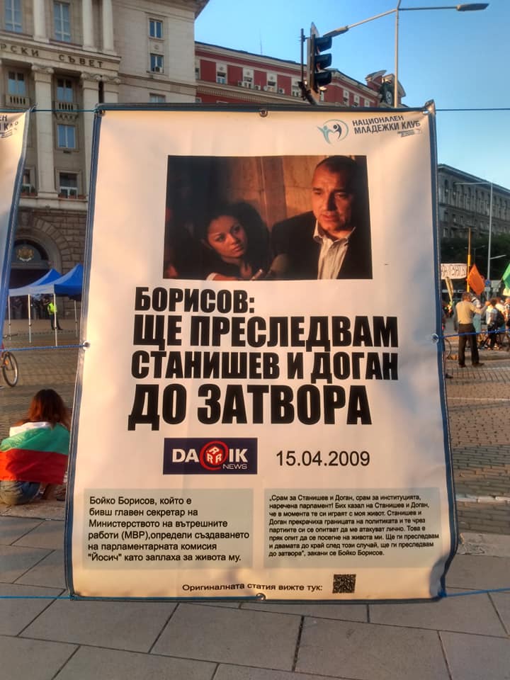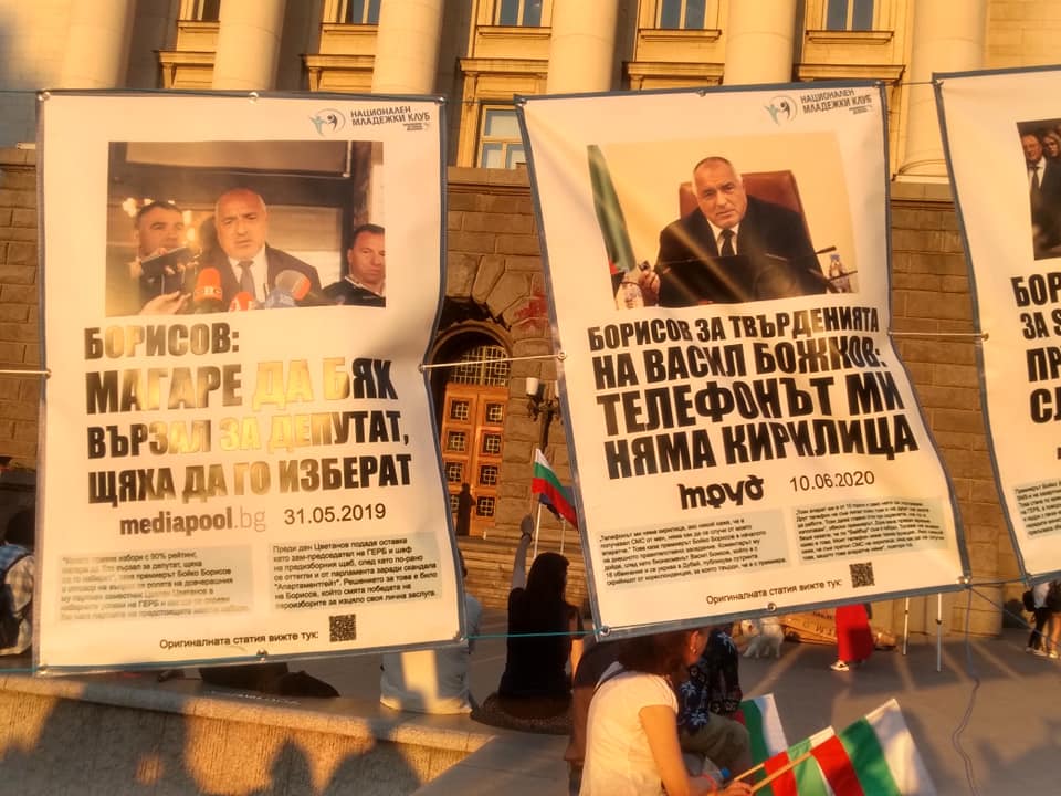Днес протестиращи бяха извадили цитати от различни ключови изказвания на премиера Борисов, които развяха в Триъгълника на властта.