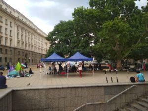 Протестиращите още през деня възстановиха палатковите си лагери, но сега те се намират в пешеходните зони и по тротоарите. Те се заканваха днес във Facebook и за допълнителни действия, като още в 18:15 часа група от тях са започнали да пресичат пешеходната пътека пред БНБ.
