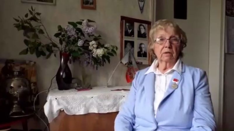 „Когато започна битката под Москва, аз отидох на фронта като доброволка, бях на 17 години. Попаднах в дивизията, която воюваше на Волоколамското направление. Първият ми страшен бой беше при освобождението на град Истра. Запомних го за целия си живот. Сутринта на 9 май ни съобщиха: краят на войната, подписан е мирният договор. Чакахме демобилизация. Но имаше заповед да ни изпратят в Далечния изток. През декември 1945 г. се върнах вкъщи.“