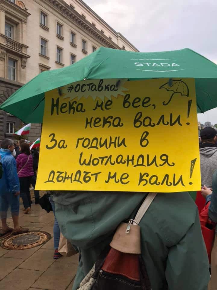 антиправителствени протести с искане за оставката на правителството начело с премиера Бойко Борисов, както и на главния прокурор Иван Гешев. Хората настояват и за свикване на Велико Народно събрание. Днес началният час на демонстрацията в София беше 19:00 часа, а не както предишните дни – 17:00 часа. Отново много граждани излязоха да изкажат несъгласието си с настоящото управление, като се събраха в Триъгълника на властта. Те не се отказаха, въпреки че в София към 19:00 часа валеше дъжд.