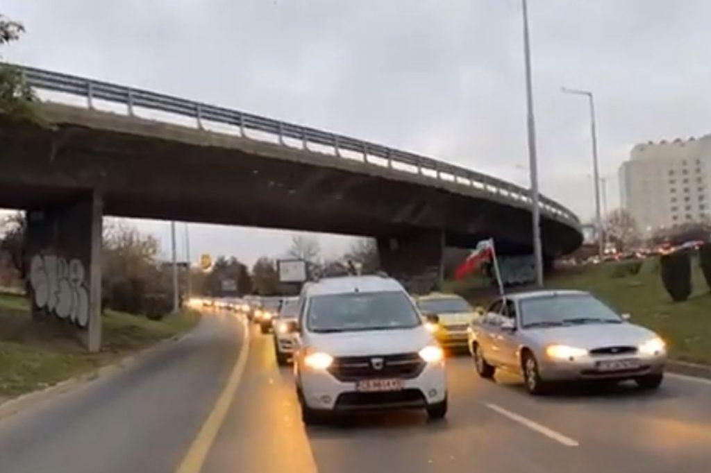 Автомобили бяха с включени светлини, а от някои от тях се развяваше българският трибагреник. Шофьорите надуваха клаксоните.