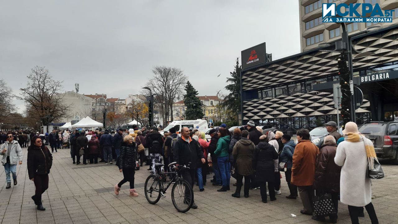 В момента се е извила дълга опашка от желаещи да опитат от традиционната рибен курбан край Часовника, предаде журналист на Искра.бг.