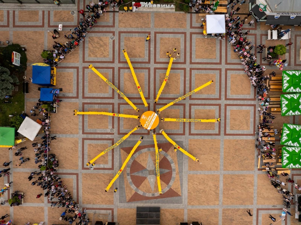 В центъра на площадното пространство момиченцата и момченцата изобразиха слънце. Надпис „155 години град“ бе поставен в средата на фигурата, а върху лъчите на слънцето бе изписано „Аз обичам Горна Оряховица!“.