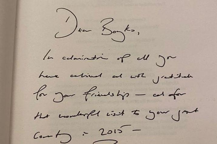 Книгата на Камерън се казва „For the record“ и той я е изпратил като коледен подарък на министър-председателя. Камерън е написал послание, което гласи: „За вашето приятелство и за прекрасното посещение във вашата страхотна страна през 2015 година. С най-добри пожелания!“