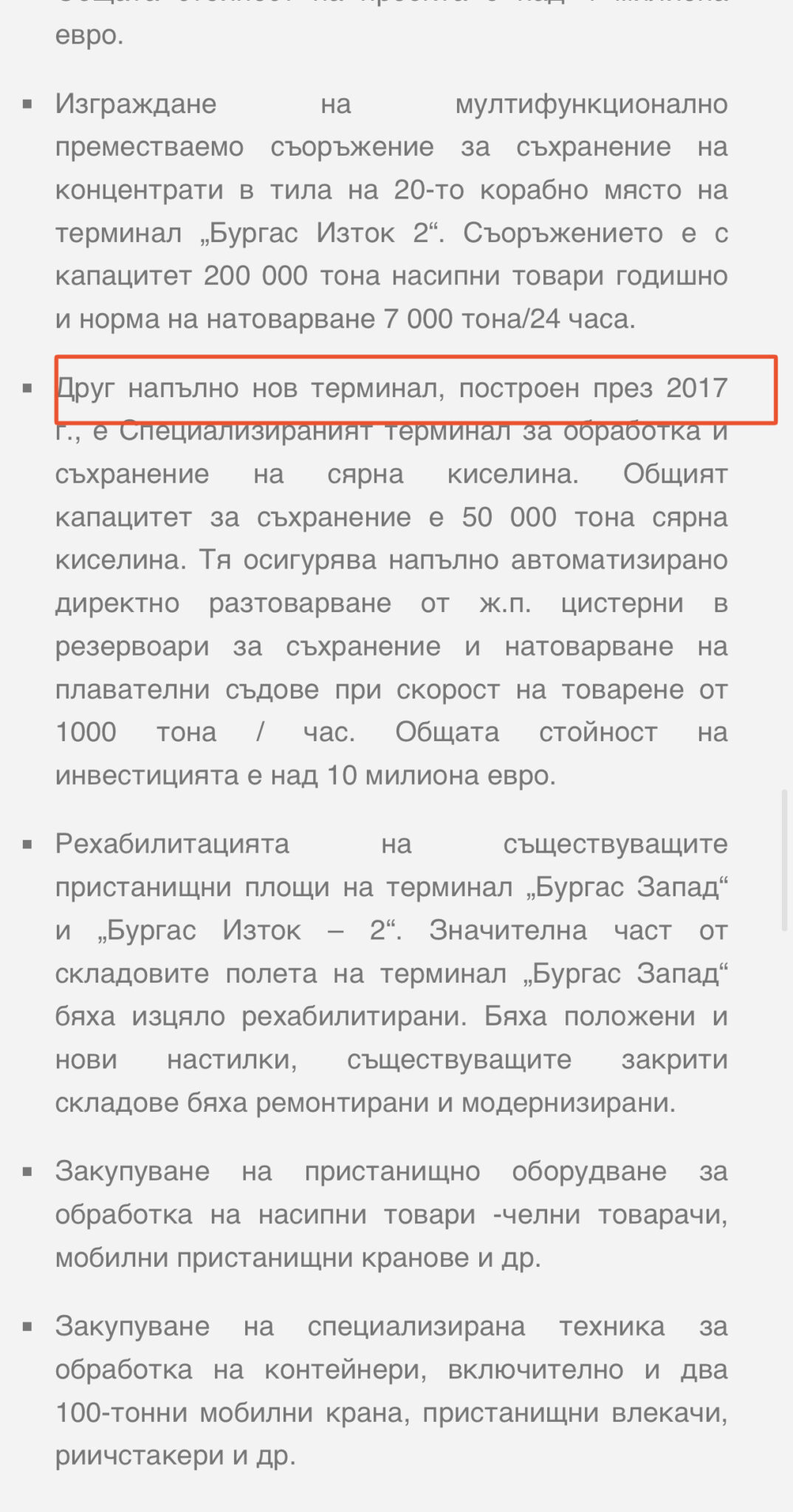 Това каза общественикът Димитър Найденов на днешната пресконференция по темата за складирането на опасни товари на „Терминал 2А“ на пристанище Бургас, концесионирано от бизнесмена Кирил Домусчиев. Подчерта и че са подали сигнали до ресорните министри на транспорта, на вътрешните работи, на финансите и на екологията, дали са спазени всички процедури при изграждането на инсталацията. Разтоварването на тези материали е започнало още през 2017 година. По думите му разрешителните за инсталация и за складиране на сярна киселина е било извършено при нарушение на закона, и добави: