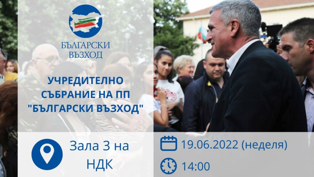 Днес ще се проведе учредително събрание на политическа партия „Български възход“ /БВ/. Предвидено е да започне в 14:00 часа в зала 3 на Националния дворец на културата.