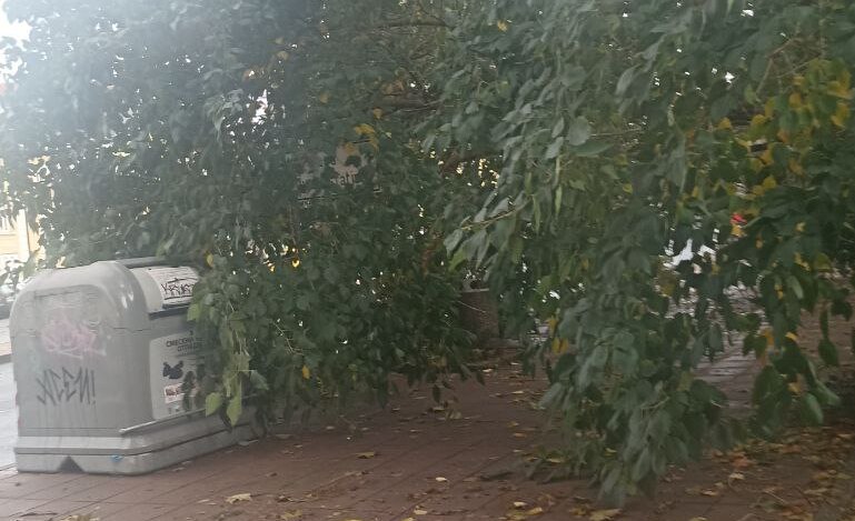 Интересен сигнал постъпи в редакцията на Искра.бг преди минути. Наш читател ни изпрати снимки от спирката срещу жп гарата и автогарата, която буквално е затрупана от паднало дърво и неговите клони.