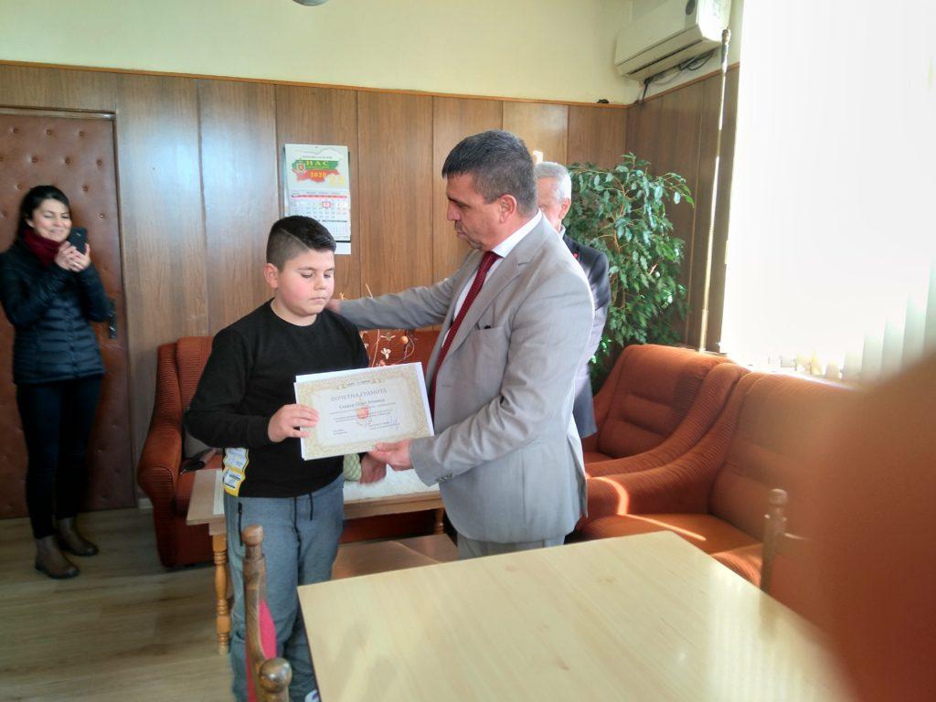 Днес малкият Сердар получи почетна грамота за своята достойна постъпка от директора на Областната дирекция на полицията в Кърджали старши комисар Атанас Илков. На събитието присъстваха майката на момчето, помощник-директорът на училище „Д-р Петър Берон“ в Момчилград и полицейски служители.