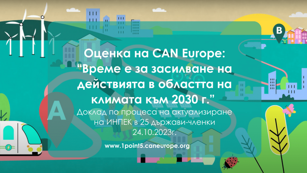 Това са заключенията на доклада относно процеса по актуализиране на ИНПЕК, който Екологично сдружение „За Земята“ и български партньори разработиха с над 30 организации от мрежата на Climate Action Network /CAN/ Europe. В него се прави анализ на климатичните цели на държавите в ЕС към 2030 г. и се проследява дали позволяват постигане на климатична неутралност към 2050 г. Откроява се силният контраст между нуждата от спешни и ускорени действия в областта на климата и бавния напредък. От оценените 25 държави нито една не прави достатъчно спрямо целта от 1,5 С — т.е. необходими са още повече инвестиции в мерки за спестяване на енергия и възобновяеми източници на енергия.