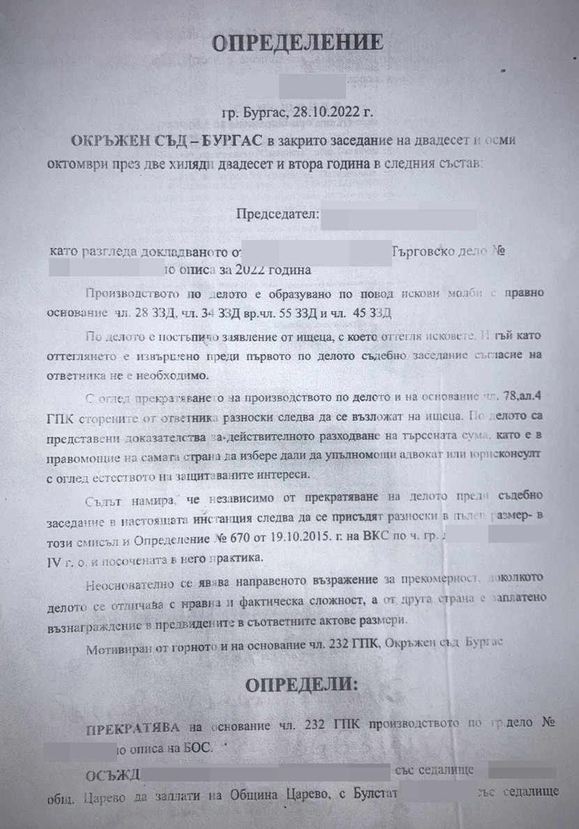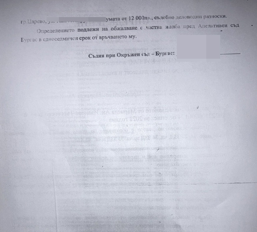 Що се отнася до казуса с платените 12000, това е било направено от Община Царево, въпреки че тя е спечелила делото. Сега предстои да се предприемат съответните действия ответната страна да възстанови сумата.