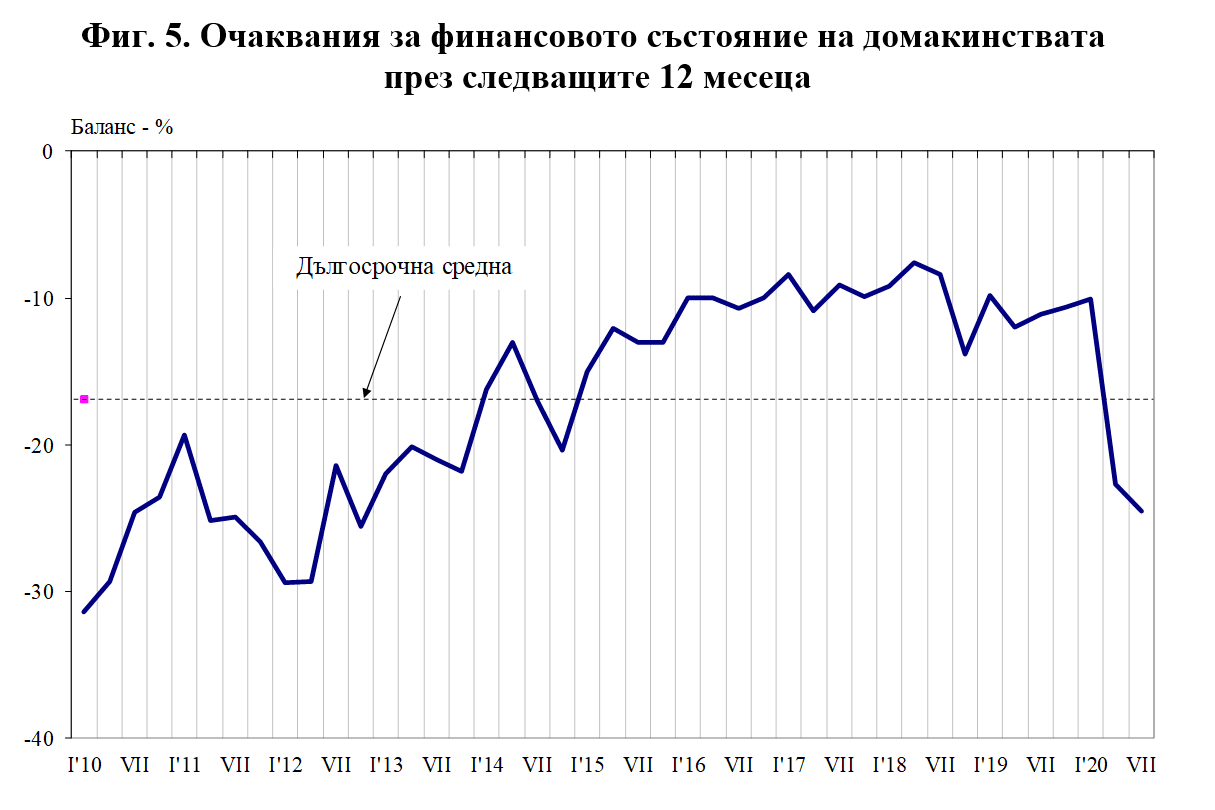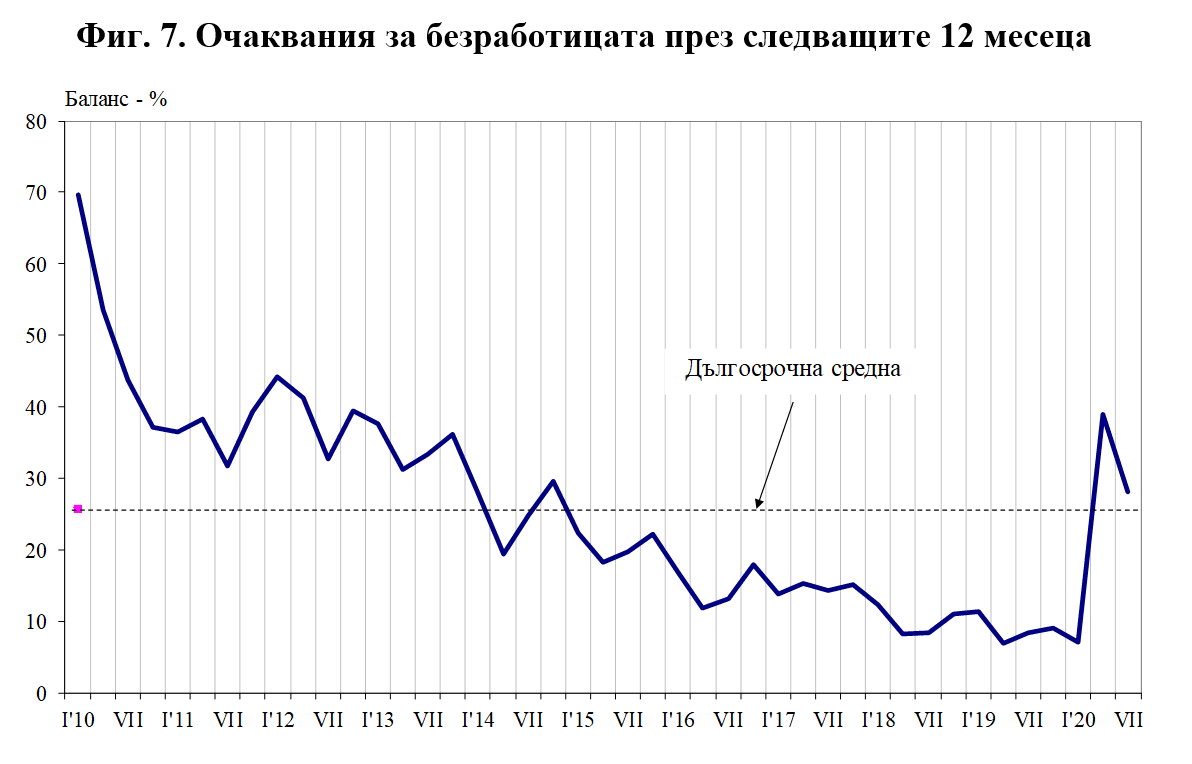 По отношение на безработицата в страната през следващите дванадесет месеца прогнозите се изместват към по-умерените мнения, вследствие на което балансовият показател се понижава с 10.9 пункта.