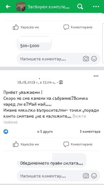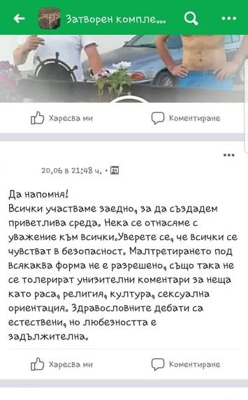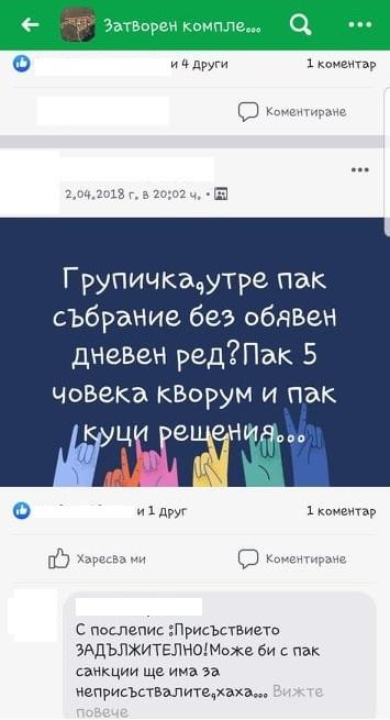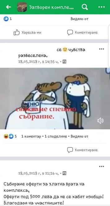 Иванова изпрати и скрийншотове от публикации в затворена група във Facebook на комплекса, с които да докаже твърденията си, че дамите създават конфликти.