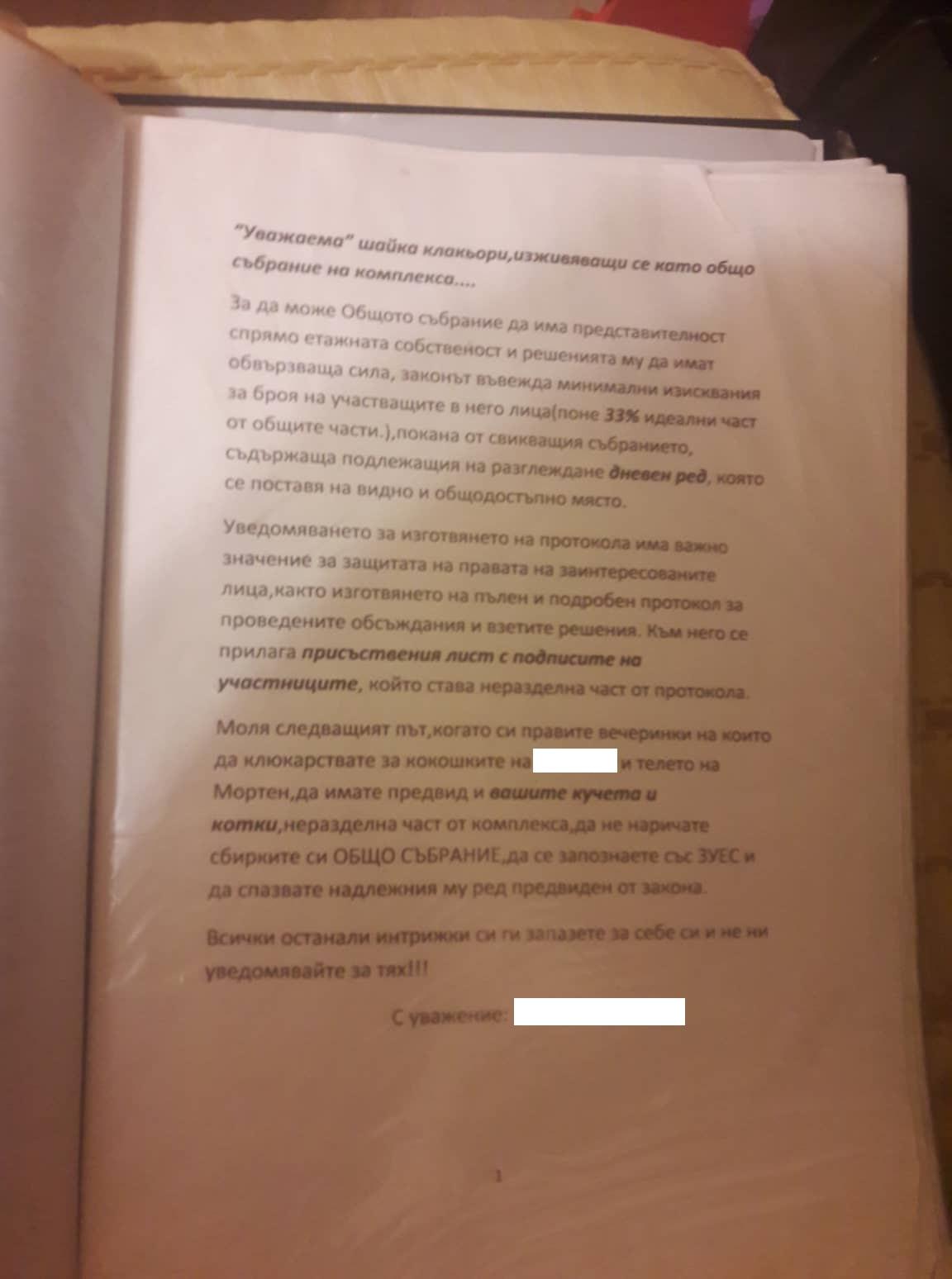 „До януари 2018 година успяхме да изчистим дълга си. Жените, които са свързали с вас, вървят на контра срещу целия комплекс. Не само срещу домоуправителя.“