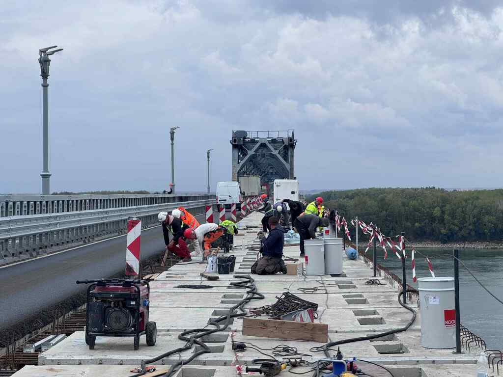 На Дунав мост при Русе са монтирани 72 от общо 128 стоманобетонни пътни панела в 320-метровия участък от платното в посока Румъния. Ремонтът върви по план и ежедневно се работи през светлата част на деня, съобщиха от Агенция „Пътна инфраструктура“ (АПИ).