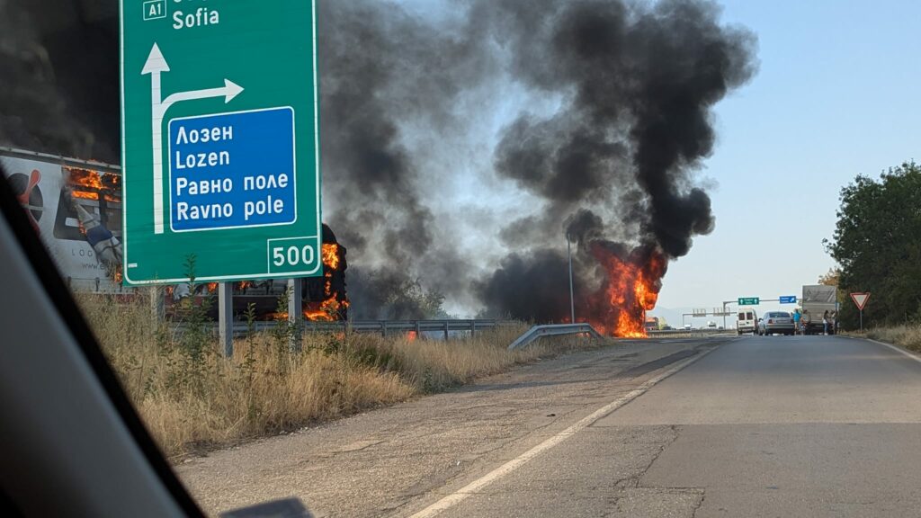 Два камиона са катастрофирали и са се запалили на входа на София на автомагистрала „Тракия“, съобщиха от МВР. Инцидентът е станал на 7-ми км на магистралата около 12:45 часа днес. В социалните мрежи са публикувани кадри, на които се вижда как от двата горящи камиони се носи гъст черен дим, който може да бъде забелязан от голямо разстояние.