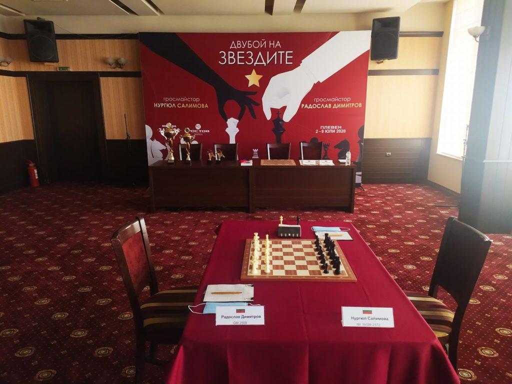 Партията в първи кръг вчера е завършила реми. Разиграл се е рядък и спокоен вариант на Дамски гамбит, в който белите на Димитров са получили малко по-добра позиция, разказа Венета Петкова. След продължително маневриране са се разменили дамите и позицията постепенно се е изравнила.