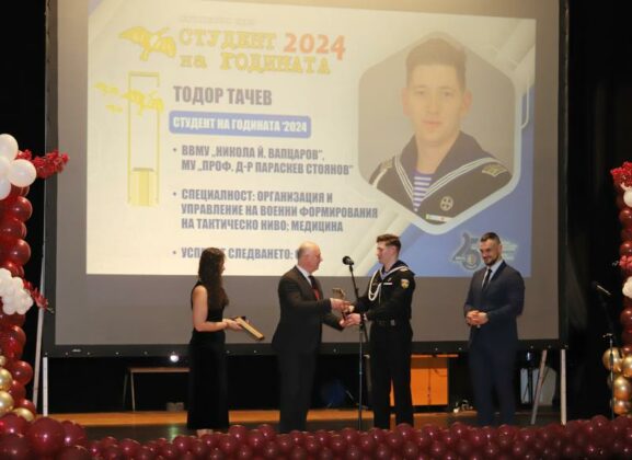 Курсант старшина I степен Тодор Тачев, студент по специалността „Военен лекар“, беше удостоен с престижното отличие „Студент на годината-2024“, съобщиха от ВМА. Той получи наградата си лично от министър-председателя Росен Желязков на официална церемония, която се проведе в присъствието на висши държавни и военни представители.