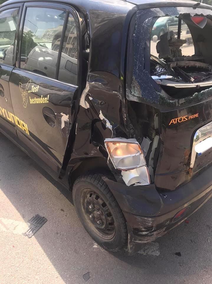 Сблъсъкът е станал днес в ранните часове на деня на улица „Цар Симеон“. От снимките изглежда, че е била засегната предницата на „Фолксваген“ и задната част на „Хюндай Атос“.
