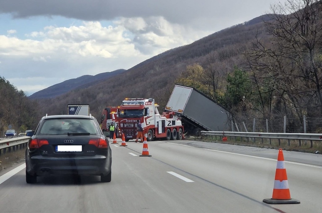 Тир е катастрофирал, удряйки се в мантинелата на магистрала „Тракия“, след тунела в посока Пловдив. Това съобщиха очевидци в социалната мрежа Facebook.