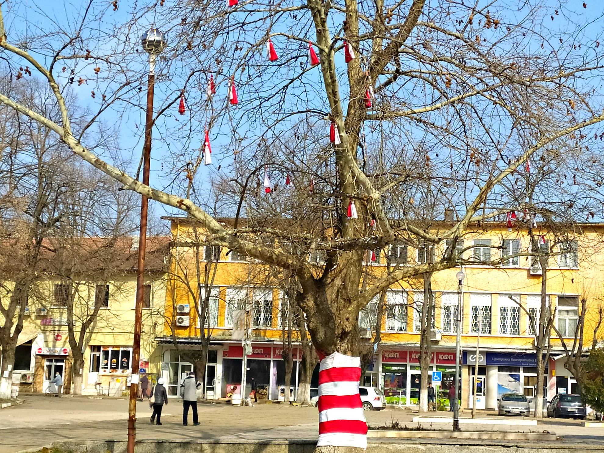 От вчера служители на общинската администрация украсяваха в червено-бяла премяна дървета и алеи на площад „Възраждане“, в непосредствена близост до сградата на местната управа в лудогорския град. Голяма мартеница ще бъде поставена и на входа на общинското учреждение, на което към момента се извършват ремонтни дейности.