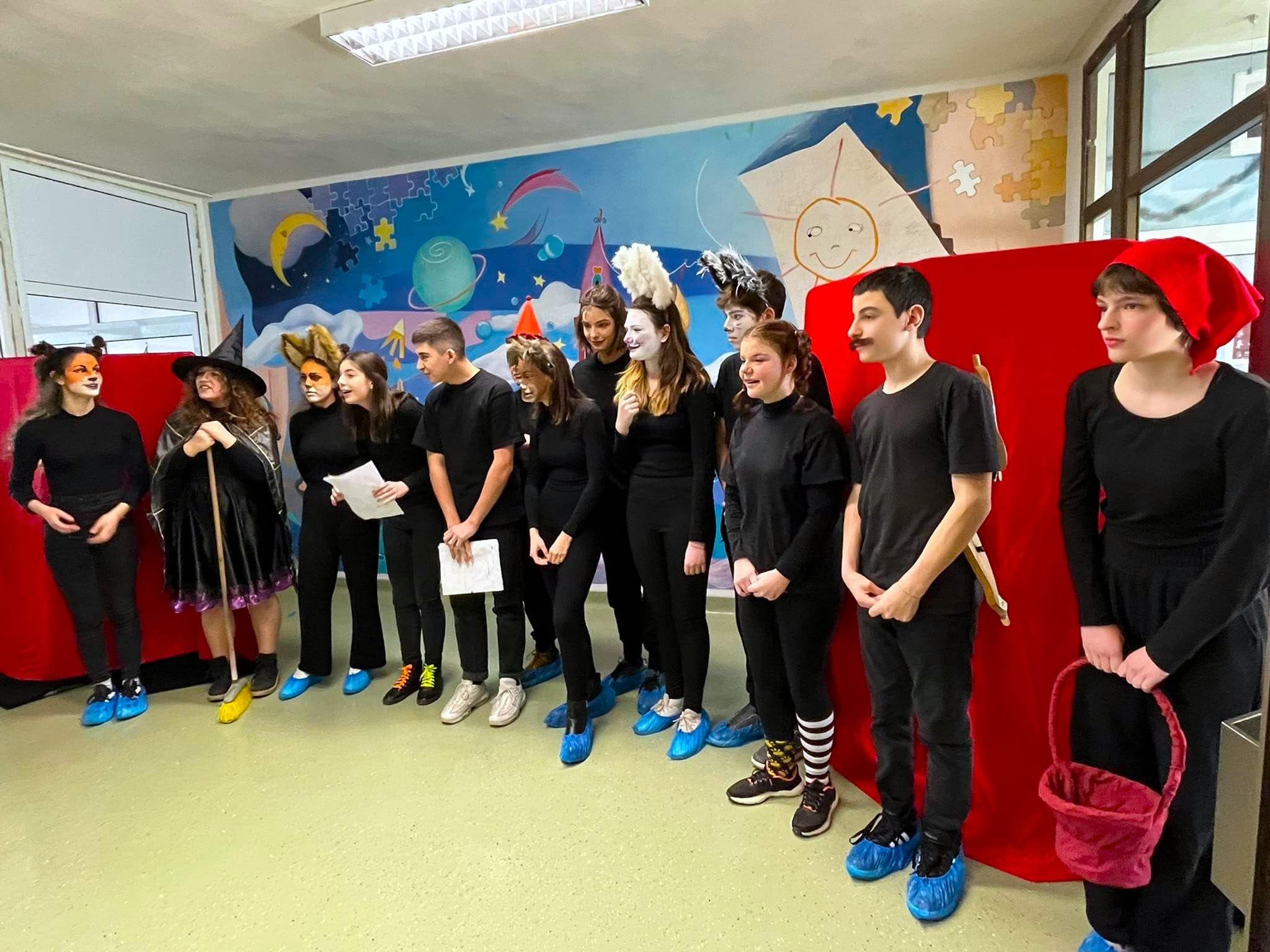 Учениците от паралелки „Театрален грим и перуки“ с ръководител Доротея Христова и „Актьорско майсторство“ с ръководител Дани Русев оставиха траен спомен в сърцата на необикновената си публика с историите на Пипи Дългото Чорапче, Джуджето, Вещицата, Червената шапчица, Косе Бос и много други познати герои.